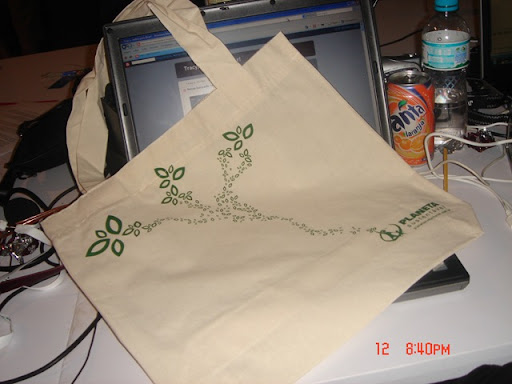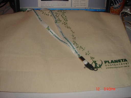 Passou agorinha por aqui uma moça simpática do site Planeta Sustentável - www.planetasustentavel.com.br - distribundo brindes (uma sacola reutilizável e um cordão para crachá) e convidando para o desafio nas áreas de criação, games e robótica. Como das três, criação é a única em que eu ainda posso fazer algo, esperem novidades a respeito.