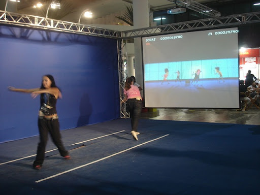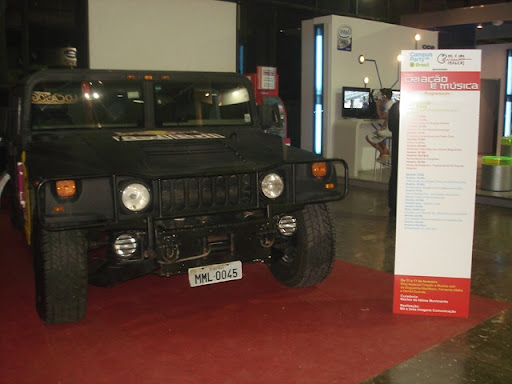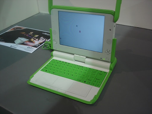 O primeiro piso da Bienal tem os estandes dos apoiadores, com algumas coisas até interessantes: um centro de relax patrocinado pela UOL, o maravilhoso estande do Ministério da Defesa (com moços do exército, marinha e aeronáutica apresentando algo que obviamente não prestei a mínima atenção), o estande do Serpro com o Classmate PC e os protótipos do PC de U$100 dolares (foto abaixo), um simulador de game FPS (First Person Shooter) em forma de esfera que deve ser bem legal (ainda estavam fazendo o tuning do bicho), alguns lugares para comer e outras pequenas atrações.