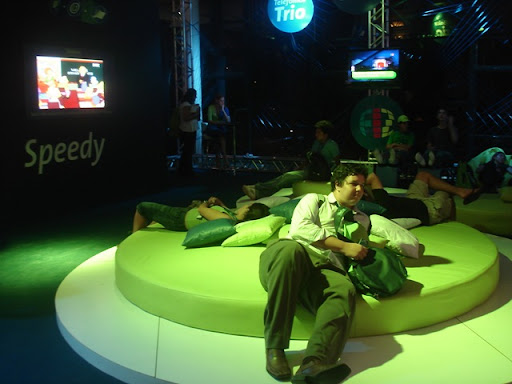 Ok, eu ainda não fiquei para morar. Mas gostei muito de tudo o que eu vi. Este post tem algumas pequenas fotos que tirei por lá: Espaços confortáveis para descanso e massagens (foto 1), a área de acampamento bem organizada (foto 2), o grande emaranhado de fibra ótica e estrutura da internet mais rápida que eu acessei em toda a minha vida (foto 3) e o simulador de game de luta (foto 4).