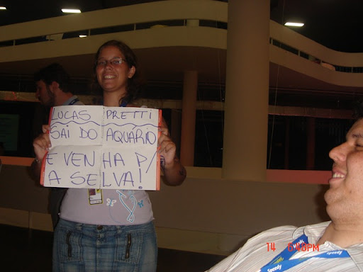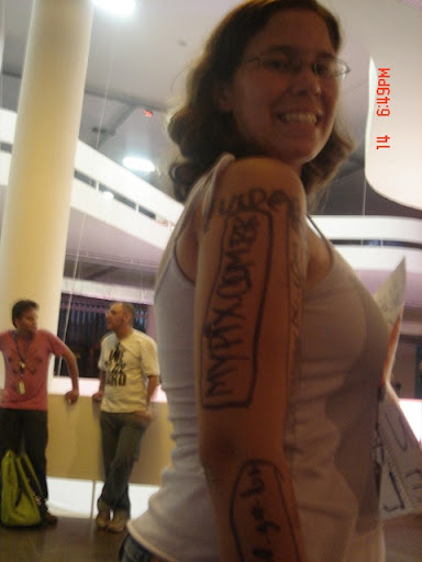A Carol, blogueira do http://meuveneno.hitechlive.com.br/ , chega aqui na bancada inconformada e protesta contra o jornalista Lucas Pretti, que por sua vez criticou método de votação do Concurso de Tatuagens promovido pela blogueira. Leia tudo sobre a treta diretamente no blog da Carol, que tem uma das melhores coberturas da Campus Party que eu já li.