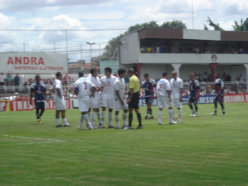 O estádio é bastante acanhado e é o único que eu conheço em que você pode ter uma intimidade grande com os jogadores. Sim, você pode zoar todas as sub-celebridades do futebol que agora jogam em times decadentes: É impagável ter o privilégio de ver de perto detalhes de figuras pitorescas do nosso futebol, como as rugas do Allan Dellon, as entradas do Márcio Careca e o cabelo de viadinho do Bóvio. É uma GRANDE PENA que o Vampeta não tenha jogado, pois eu seria a primeira a gritar LINDO do alambrado.